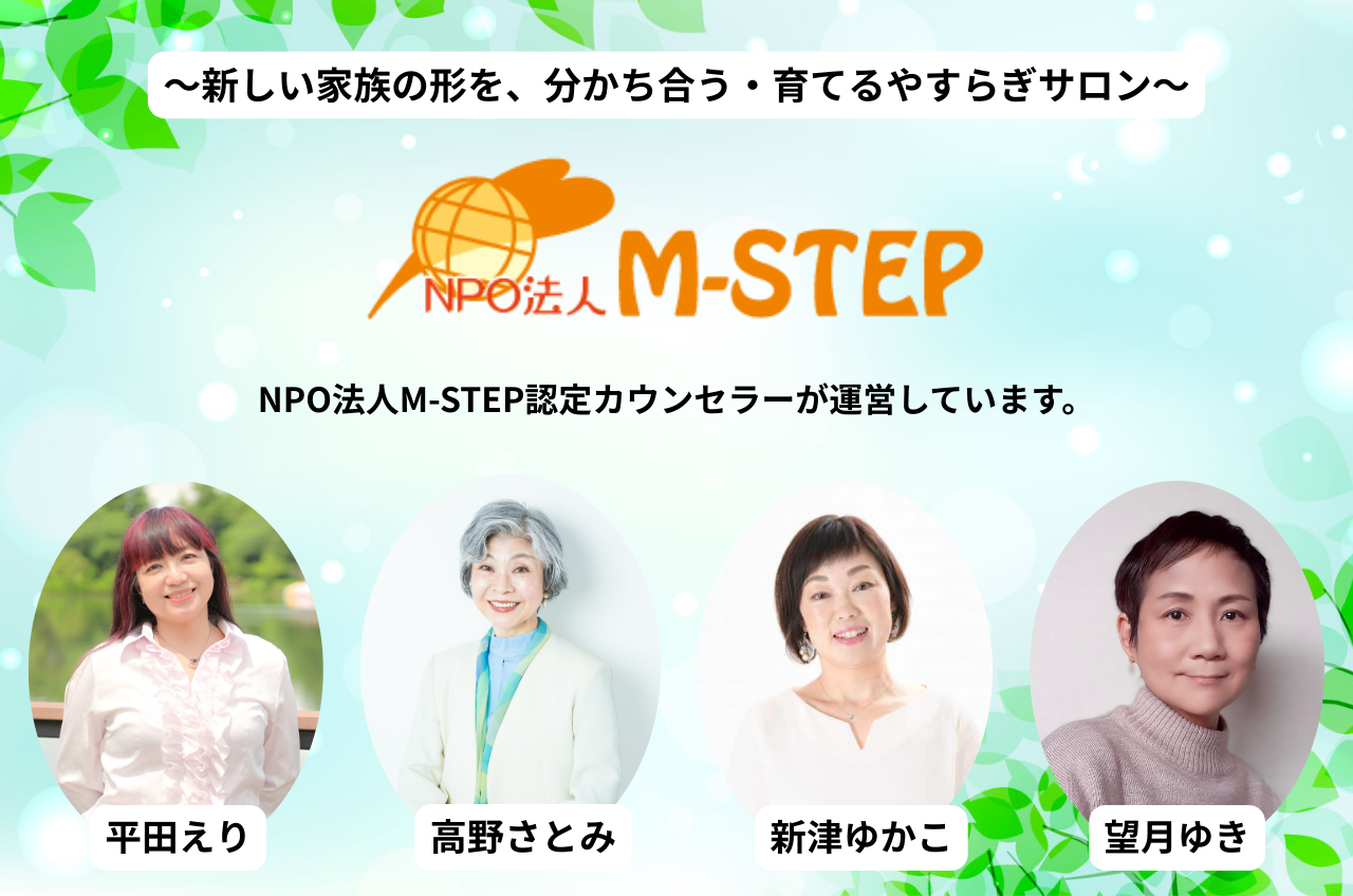 NPO法人M-STEPは、2003年、東京都三鷹市を中心に子連れ再婚家庭(ステップファミリー)の当事者団体として発足をし、2014年に日本で唯一、ステップファミリーをサポートするNPO法人として設立された団体です。